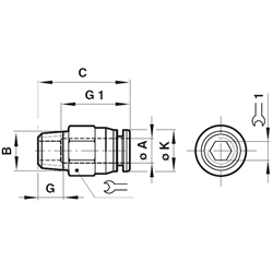Werkstoffe: Grundkörper: Messing vernickelt. Dicht- und O-Ringe: