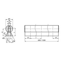 Werkstoff: Stahl 1.1213 (Cf53), gehärtet und geschliffen, Härte 62+-2 HRC, Durchmesser-Toleranz ISO h6. Unterstützung aus stranggepresstem Aluminium. Länge: Wahlweise 600 mm oder 1200 mm. Lieferung ohne Befestigungsschrauben. Einbaufertige, unterstützte Linearwellen zur Verwendung mit offenen Linearlagereinheiten oder Profillaufrollen. Die Wellen sind über die gesamte Länge unterstützt. Ein Kürzen ist kundenseitig mittels Trennschleifer möglich. Die Befestigung erfolgt von unten, durch die kundenseitige Grundplatte. Die erforderliche Schraubenlänge richtet sich nach der Stärke der Grundplatte.